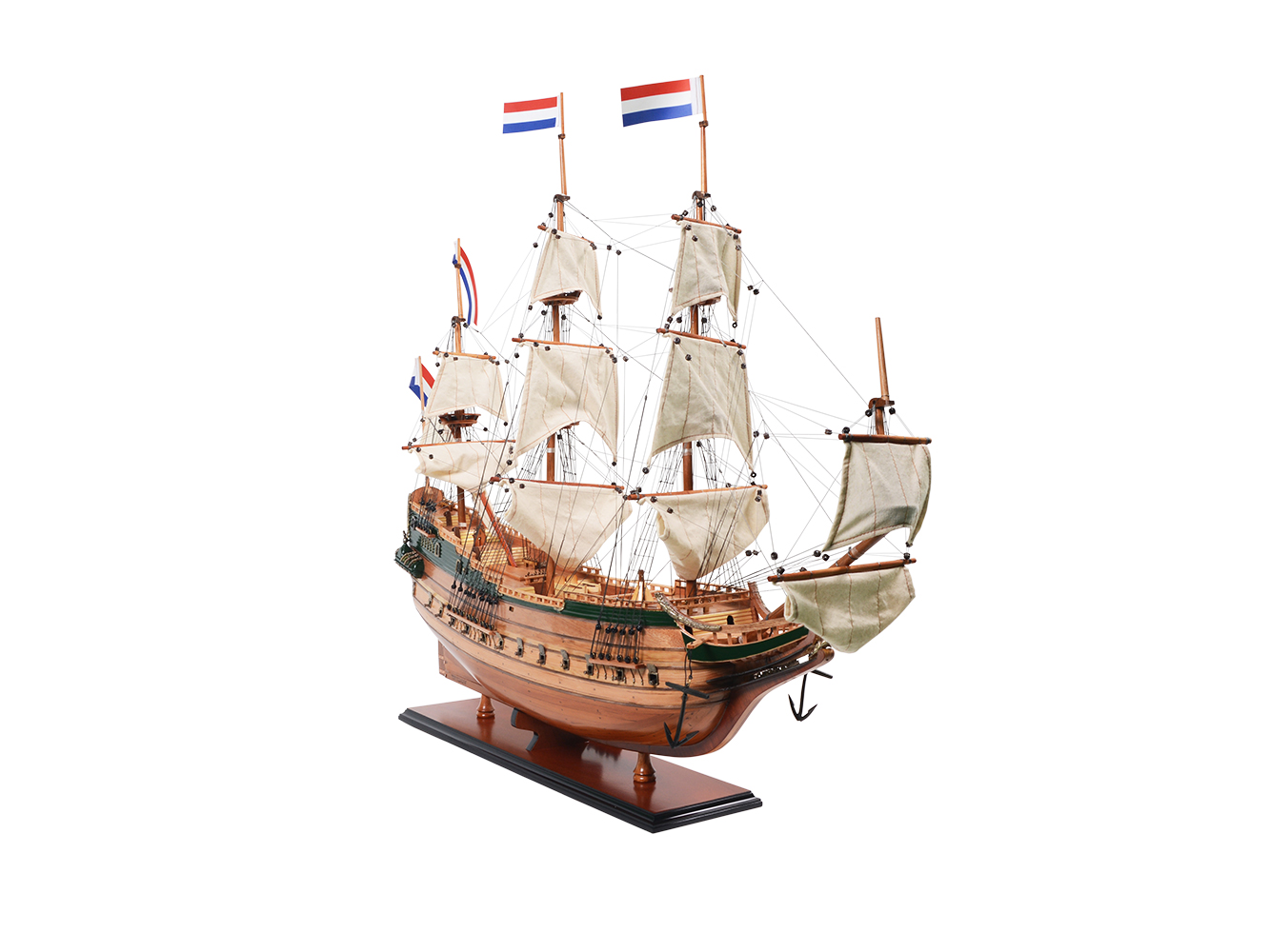 From the carefully sanded and painted hull to the intricate brass cannons, portholes, anchors, dials, and wheels, every element showcases our dedication to historical accuracy and aesthetic beauty. Each aspect of our Batavia model is meticulously designed to evoke the spirit of maritime exploration and adventure.