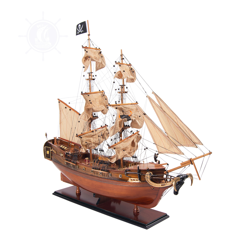 Handcrafted with precision using traditional frame construction and hull planking techniques, our pirate ship replica is a testament to craftsmanship and attention to detail. Exotic woods such as teak, mahogany, rosewood, or mango have been skillfully incorporated, resulting in a strikingly noble and decorative end product.